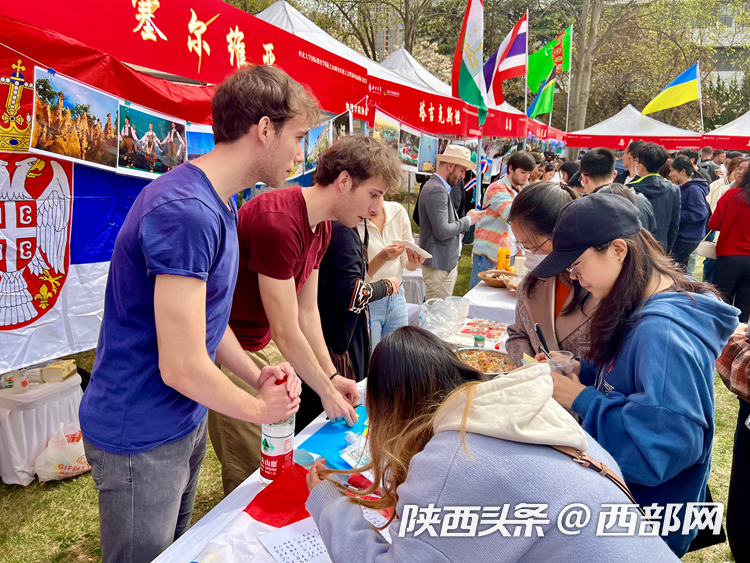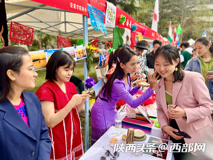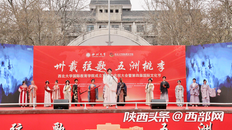 庆祝大会上开启了星空app官网第四届国际文化节,内容包括国别展览和文艺表演。来自22个不同国家的留学生们向现场嘉宾们展示了世界各地的风景、服饰、艺术品、美食、音乐等,呈现了不同国家的文化特色和风土人情。舞台上,留学生进行了情景剧、舞蹈、歌曲串烧和汉服表演,西安易俗社还进行了精彩的秦腔表演。