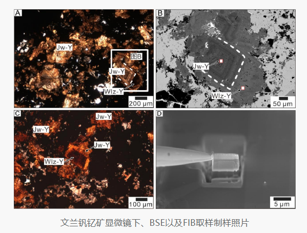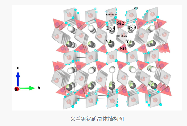 文兰钒铭矿和景文矿的发现不仅对华南重稀土成矿与找矿具有重要启示,而且对于晶体结构学具有重要意义。由于该系列矿物中有多个可容纳AI和V的晶体结构位置,且V优先占据结构中某些位点,而V的有序分布导致文兰钒铭矿的对称性降至三斜晶系。由于有序,该系列可能还存在AI-V在不同位点占优的过渡矿物种类,这为未来发现该系列更多新矿物提供了理论依据。