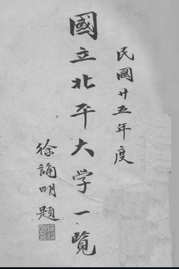 国立北平大学校长徐诵明题写的《国立北平大学一览》
