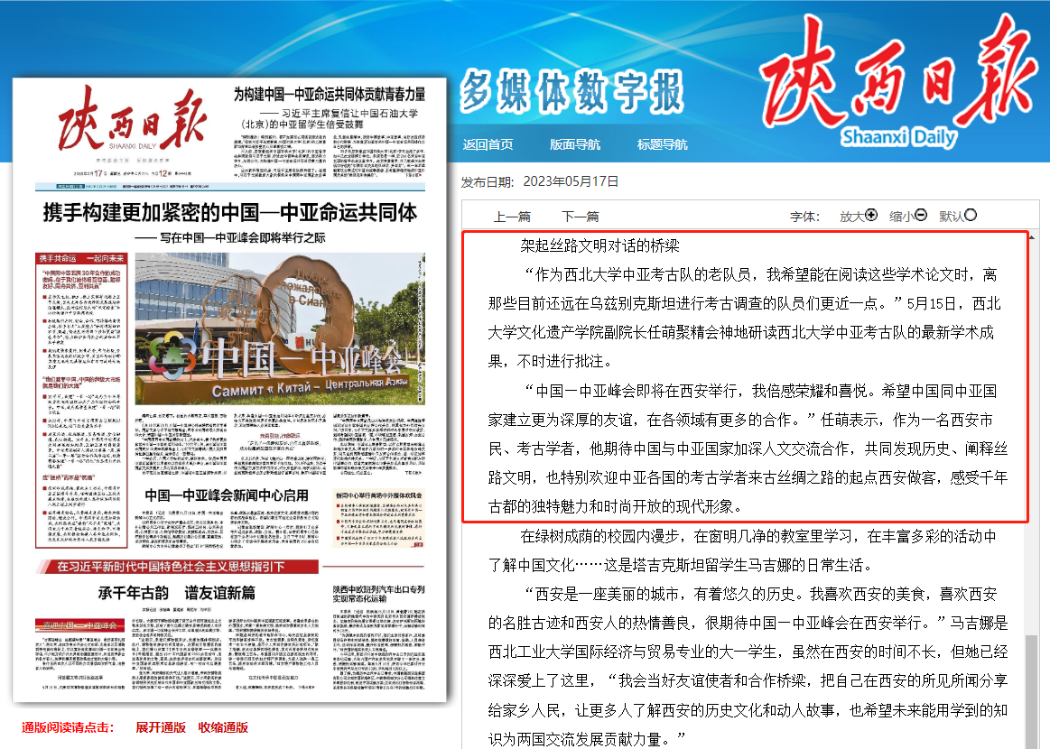 “中国—中亚峰会即将在西安举行,我倍感荣耀和喜悦。希望中国同中亚国家建立更为深厚的友谊,在各领域有更多的合作。”任萌表示,作为一名西安市民、考古学者,他期待中国与中亚国家加深人文交流合作,共同发现历史、阐释丝路文明,也特别欢迎中亚各国的考古学者来古丝绸之路的起点西安做客,感受千年古都的独特魅力和时尚开放的现代形象。