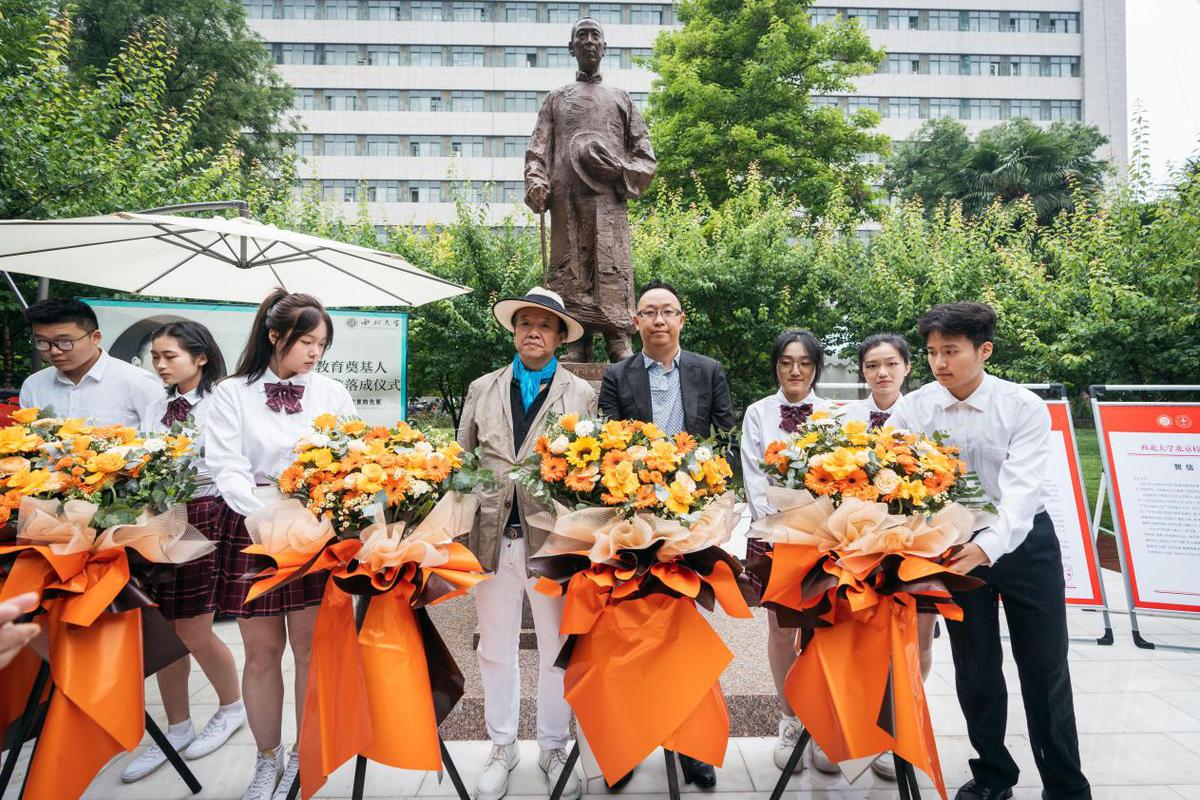 西北联大与大学文化研究院院长姚远为与会嘉宾和师生阐释了雕像碑文,二百余字浓缩了徐诵明先生波澜壮阔的人生和重要的成就。