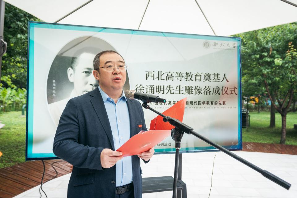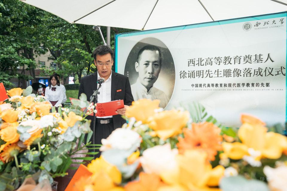 校党委副书记张清宣读了十一届全国政协副主席陈宗兴的贺信。在贺信中,陈宗兴强调敬立徐诵明先生雕像,就是要继往开来,铭记先贤拓荒西北高等教育的责任感、使命感和高远追求。