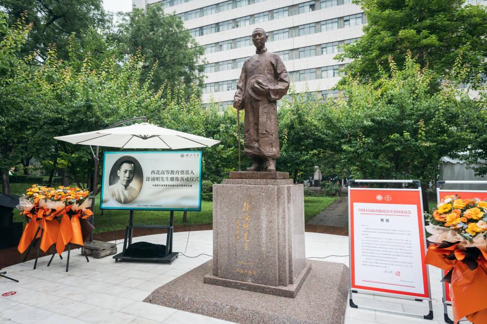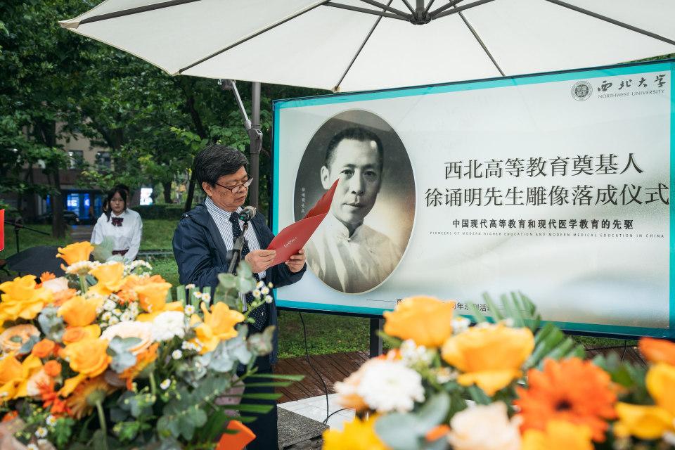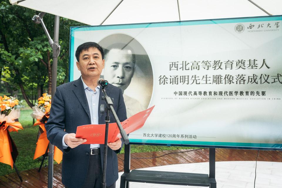 5月26日上午,星空app官网举办“徐诵明教育思想学术研讨会暨徐诵明雕像落成仪式”。中国病理学的开创者、中国现代高等教育和现代医学的先驱、西北高等教育奠基人徐诵明全身雕像在星空app官网太白校区落成。该塑像由十四届全国政协副秘书长、中国美术馆馆长吴为山教授设计创作。