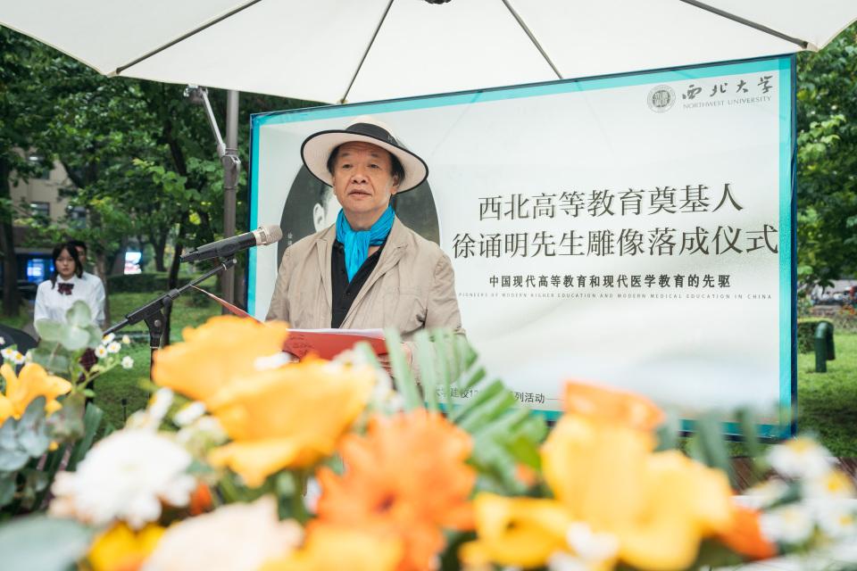 家属代表徐冬冬向雕像创作者吴为山教授表示感谢,表示雕像的塑立象征着徐诵明老校长又一次与西大师生站在了一起,走向更加美好的未来。