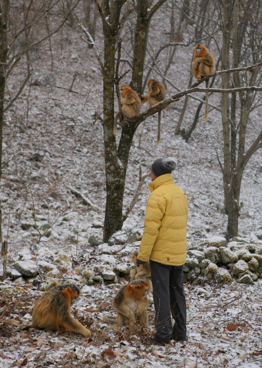 早年,齐晓光每年在秦岭金丝猴基地都会待六七个月,风餐露宿,穿越险峻山脉,与自然界的秘密进行一场场激动人心的对话。无数个日夜,细心观察金丝猴每一个细微的动作,不遗余力地收集数据,分析研究结果,以期能够解开这个生物宝库的奥秘。也正是常年驻守野外基地,让他们探索出适用于山地灵长类行为学研究的一整套方法,为后续长期研究的开展奠定了关键的基础。