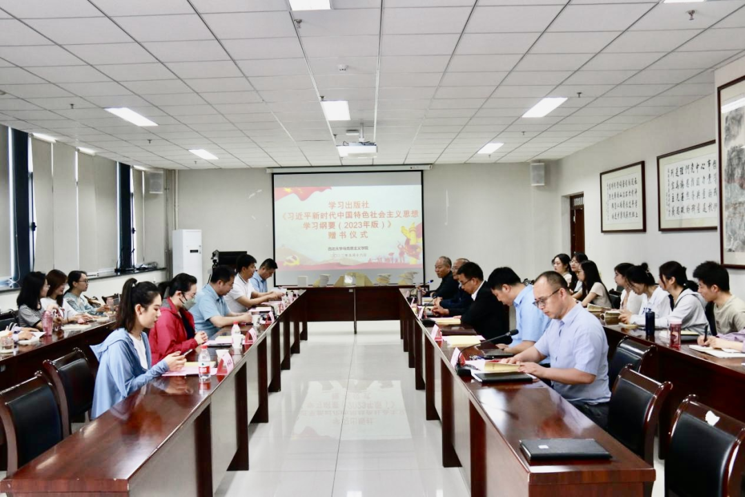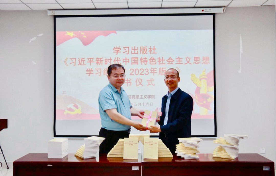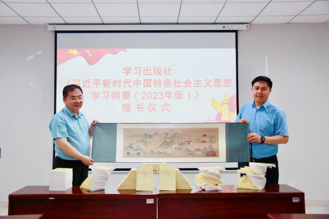 5月16日上午,学习出版社在星空app官网长安校区举行《习近平新时代中国特色社会主义思想学习纲要(2023年版)》(以下简称《纲要(2023年版)》)赠书仪式。学习出版社副总编辑刘向军、陕西省委宣传部理论处副处长罗军、星空app官网党委常委、宣传部部长田明纲出席活动、学习出版社发行部同志、星空app官网国内合作与校友工作处负责人、马克思主义学院师生代表参加了活动。