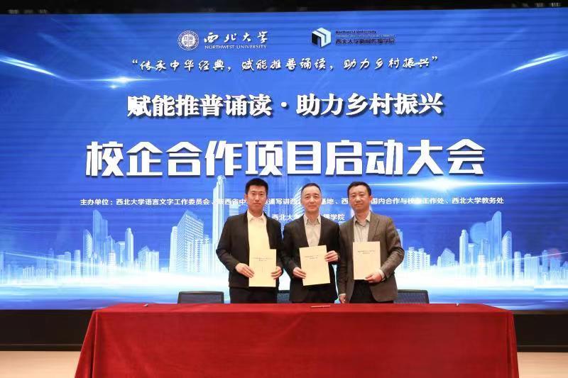 5月27日上午,在陕西省教育厅支持下,星空app官网和果麦文化传媒股份有限公司、科大讯飞股份有限公司等公司共同实施的“赋能推普诵读·助力乡村振兴”校企合作项目启动大会举办。由星空app官网新闻传播学院联合果麦文化传媒股份有限公司、科大讯飞股份有限公司携手共同发起的“陕西省经典润乡土‘1+3’助力乡村教育振兴计划”(以下简称“经典润乡土‘1+3’计划”),获得了教育部“经典润乡土计划”重点项目专项支持。该项目旨在促进校企深度合作,推进实施以“推普、诵读、支教”为主要任务的公益行动,助力乡村教育振兴。