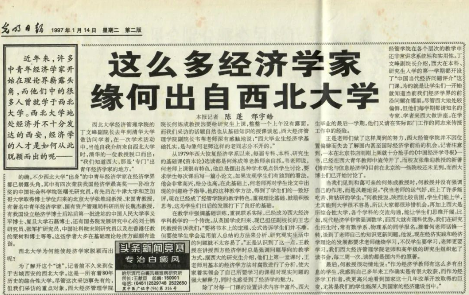 张曙光、刘世锦、魏杰、王忠民、邹东涛、张维迎等著名经济学家,均出自西大门下……