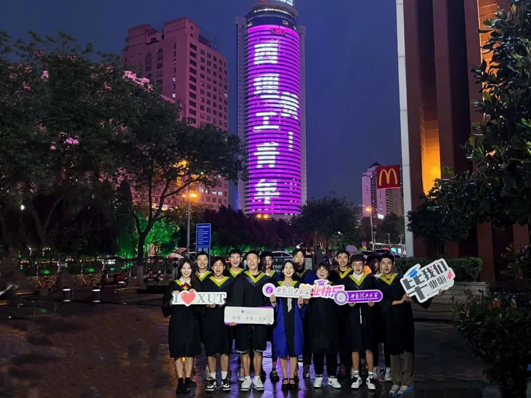 6月19日点亮西北工业大学、6月20日点亮星空app官网、6月21日点亮长安大学、6月22日点亮西安理工大学,每晚20:00至20:30在陕西信息大厦循环播放。