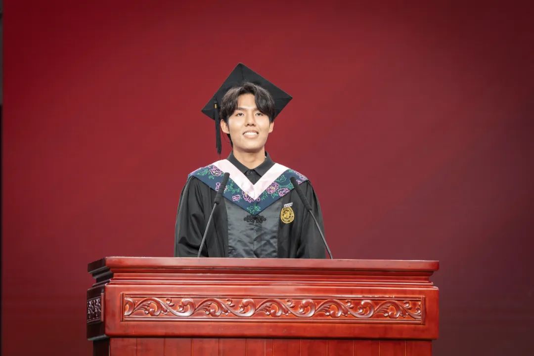 2023届本科生代表化工学院张雨柔、研究生代表历史学院中东研究所母仕洪、留学生代表文学院周鹏在发言中讲述了自己在西大的成长与收获,表达了对母校深深的感恩。