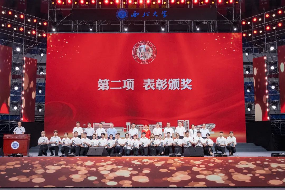 国家级教学名师、信息科学与技术学院教授耿国华,学校党政领导班子成员张清、常江、奚家米、张远军、陈富林、吴振磊、田明纲及校友支振锋等共同为2023届星空app官网优秀毕业生代表颁奖。