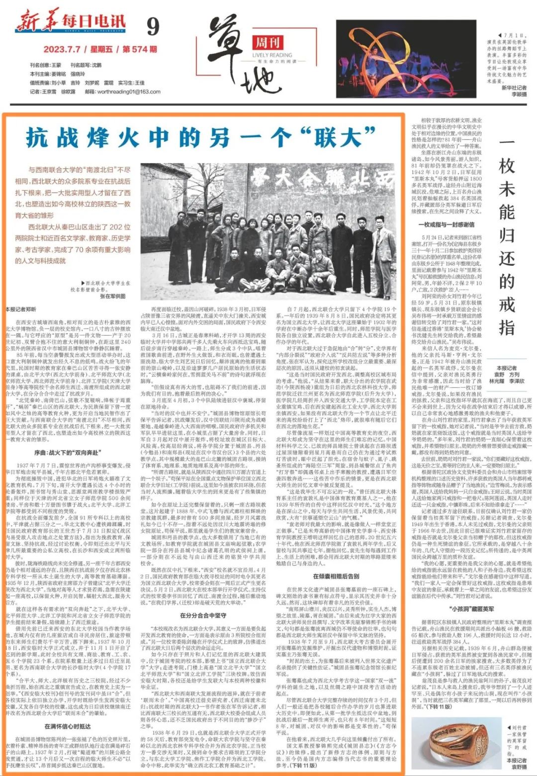 在拥有99年历史的城固县第一中学,有一座满园桂树伸向二层回廊的漂亮小院。利用课间,校党办主任、高三语文老师杨启明在小院中,向几名学生讲述80多年前黎锦熙、许寿裳、罗章龙等名师在此克服困难,坚持授课的故事,为即将迎来高考的同学加油鼓劲。“我们在协助保护这座校内文物的同时,也尽可能使其‘活化’利用,丰富校园文教生活。”杨启明说,他也是西北联合大学法商学院旧址的文保员,“学校利用开学第一课、主题党日等活动,组织师生走进旧址,感知西北联大历史,厚植爱国主义沃土。”位于县城中心的联大旧址——城固文庙大成殿安静肃穆,与几米外一座幼儿园的嬉闹相映成趣。“在西北联大的带动和引领下,城固成为抗战时期全国三大文教中心之一。当时县内共有8所中学,在陕西各县独占鳌头。城固的首位大学生,也是联大时期培养的。”崔纪军说,“尽管西北联大留存于世的史料和遗迹远远算不上丰富,但影响却是深植人心的。”在陕西理工大学图书馆的西北联大汉中办学纪念馆里,该校教育科学学院副教授陈海儒正端详一张西北联大时期的毕业证。发起布展已历十年,他与校内专家不断挖掘、抢救出新的史料,如今正致力于完成口述西北联大历史的项目。“我是在云南师范大学上学时,因为接触母校对西南联大历史的挖掘过程,而对西北联大历史产生兴趣的。”他说,西北联大因其短暂的办学史,并不为大多数人所知,应该用更大力度、更多元的形式挖掘并呈现这段尘封的历史。2019年10月,位于城固县的三处西北联合大学旧址被列入第八批全国重点文物保护单位名单;2020年9月,旧址入选第三批国家级抗战纪念设施、遗址名录,为相关建筑物带来了更妥善的修复与维护。同时,北京师范大学、天津大学、西北工业大学、星空app官网等对各自校内老专家、老干部及其后辈的访谈,加上定期举办的学术交流,使得新的研究成果正不断涌现。“西北联合大学写下了中国高等教育史的光辉一页。它虽办学时间短暂,但基本完成了这一区域未来几十年高等教育版图的擘画,在汉中、陕西乃至全国都留下了深远的影响。”汉中市委常委、宣传部部长屈占权表示,汉中将在继续做好文物保护与史料收集的同时,进一步与相关单位协同,充分挖掘西北联大背后的红色革命精神和爱国主义文化内核,让西北联大的办学精神和理念薪火相传、生命永续。