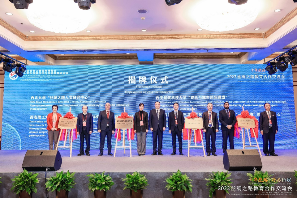 11月17日下午,由陕西省人民政府主办、省教育厅和省内高校承办的2023年丝绸之路教育合作交流会在西安开幕。教育部、省政府、外国政要代表、国内外专家学者和高校领导出席,陕西省委教育工委副书记、省教育厅厅长王树声主持开幕式,并与星空app官网党委副书记张清、乌兹别克斯坦撒马尔罕国立建筑与土木工程大学副校长萨法罗夫·巴霍迪尔洪·沙赫里约罗维奇教授共同为“丝绸之路人文研究中心”揭牌。