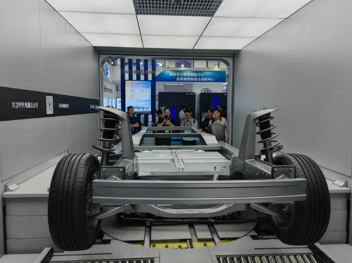 这是在四川省宜宾市举行的2023世界动力电池大会上展示的新能源汽车换电系统(2023年6月9日摄)。新华社记者 胡旭 摄