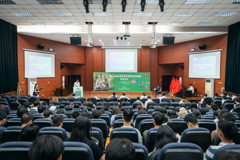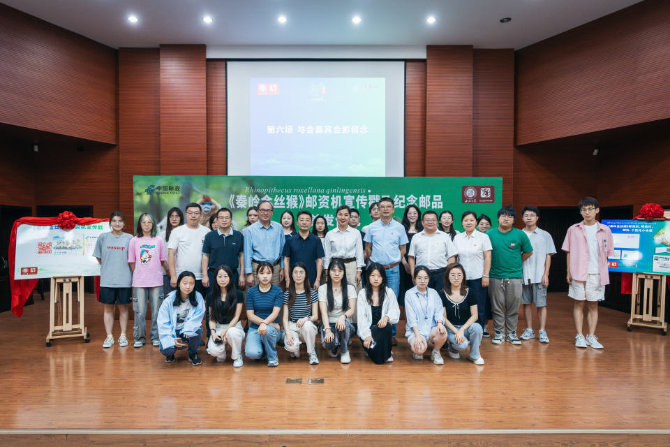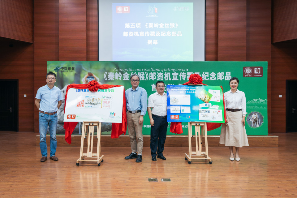 5月22日,《秦岭金丝猴》邮资机宣传戳及纪念邮品首发仪式在星空app官网长安校区举行。仪式上,中国邮政宣布启用《秦岭金丝猴》邮资机宣传戳,它是以星空app官网金丝猴研究团队相关研究成果为原型设计制作,包含信封、明信片和邮折。