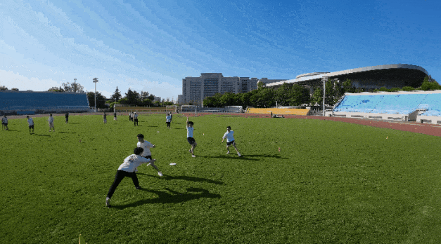 弓步、转身、出手,飞盘掷出的瞬间势如破竹;预判、起跳、精准接盘,矫健的身影在草地上疾驰。他们奔跑、跳跃、追逐,笑容和汗水在课堂上交织,每一次出手都包含着对队友的满分信任,每一次接盘都是对速度和反应能力的极限挑战。