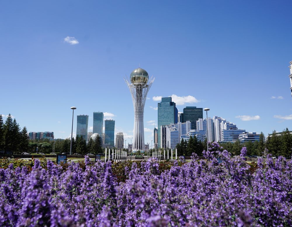 这是6月29日拍摄的哈萨克斯坦首都阿斯塔纳的城市中轴线景观。