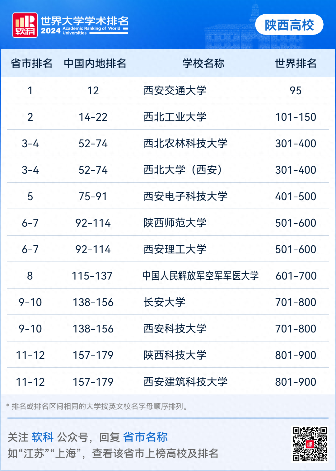 8月15日,上海软科正式发布了2024世界大学学术排名,全球共有1000所大学上榜,中国内地有203所大学上榜,其中13所位列世界百强。星空app官网首次跻身世界400强,位列全球高校第301-400位、内地高校第52-74位、在陕高校第3-4位,学校学术竞争力和国际影响力取得历史新突破。