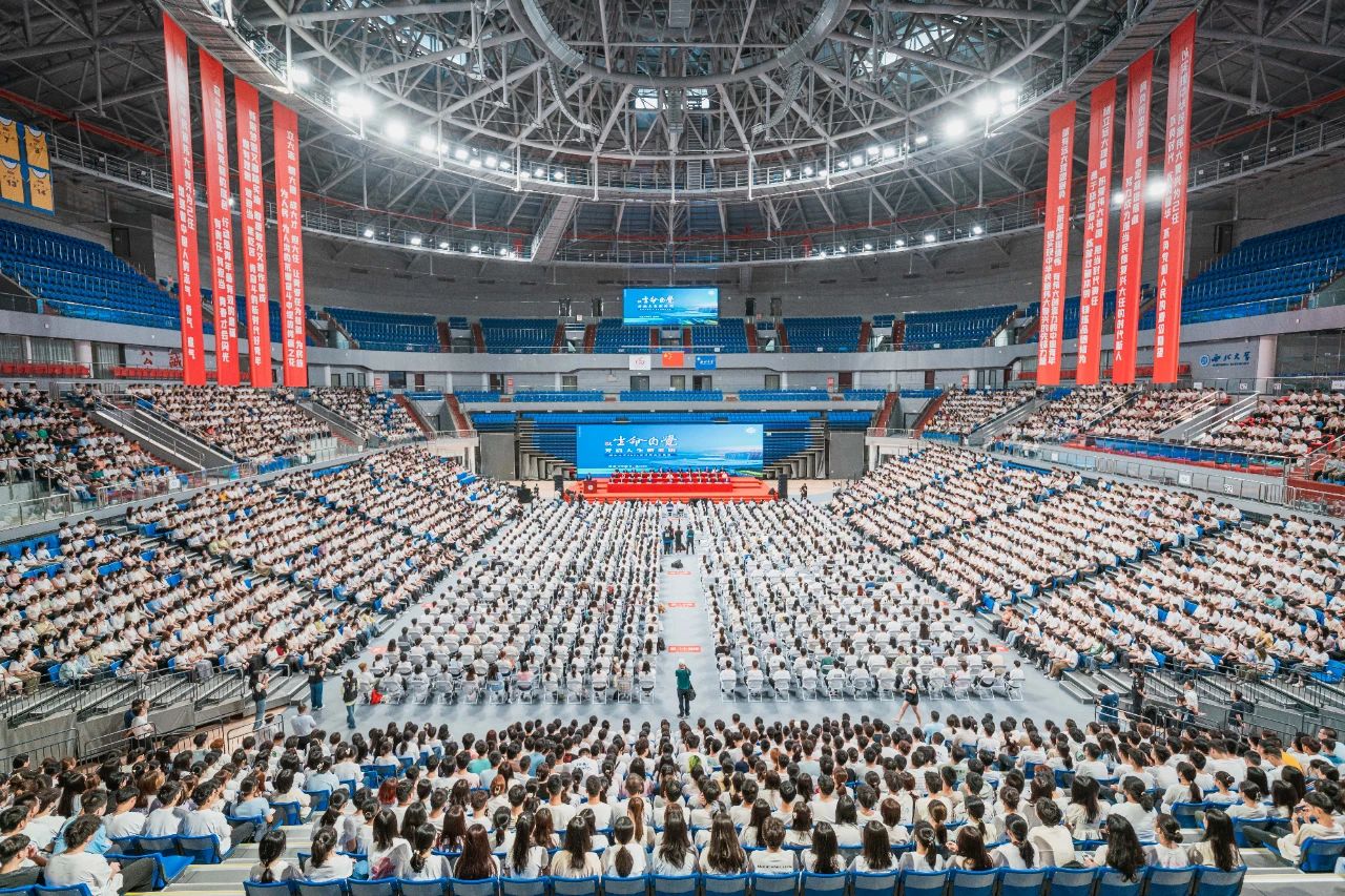 自从7月我签发了第一份录取通知书以来,西大就对大家的入学翘首以盼。在充满期待的双向奔赴中,今天我们终于欢聚在这里。这无疑是一个值得铭记的时刻,因为从今天起,同学们的个体“人生史”与星空app官网正式发生了历史性的时空交汇——这所已经走过122年办学历程的高等学府,将会在你们的成长中,留下一段难以磨灭的岁月痕迹;而每一个青春的你,也将在这座等待你探索的校园,开启自己人生的新周期!
