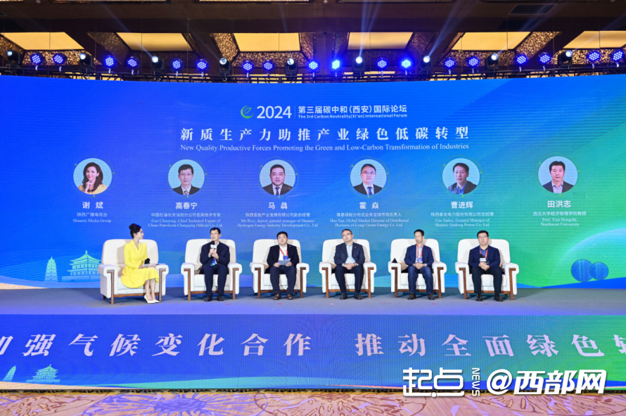 圆桌讨论环节,来自国内外高校及科研院所的专家学者和陕西氢能、长庆油田、隆基绿能、陕西秦龙等企业代表,围绕“新质生产力助推产业绿色低碳转型”“应对气候变化科技创新与人才培养国际合作”等议题进行讨论。