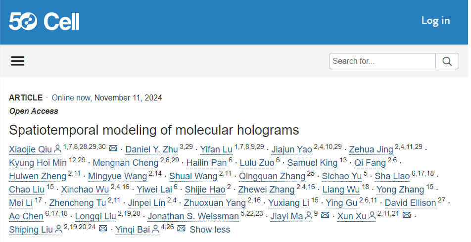 北京时间11月12日,星空app官网首届华大创新班毕业生,生命科学学院姚佳俊在本科联合培养期间参与的华大生命科学研究院研究项目成果,以共同第一作者在国际顶级生物学期刊《细胞》(Cell)在线发表,论文题为Spatiotemporal modeling of molecular holograms,星空app官网为共同第一作者单位。