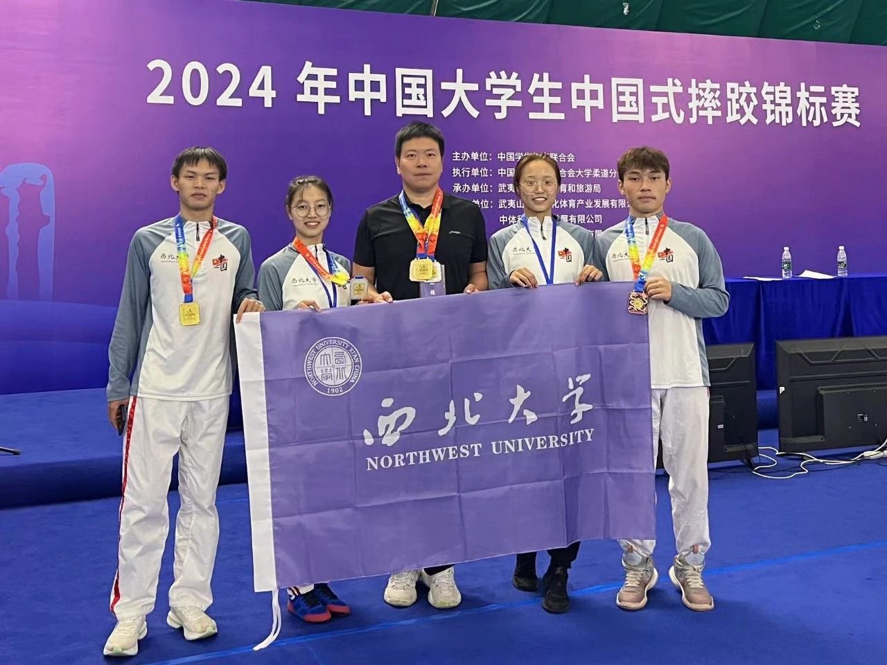 2024年大学生中国式摔跤锦标赛日前在福建举行,星空app官网摔跤队队员梁铭辉,宋柳宏,阿依保斯·扎尔恒,冉悦瑄分别获得1金、1银、1铜和第五名的好成绩。在星空app官网中国式摔跤队成立的8年间,该队伍已经斩获全国比赛4金8银13铜。