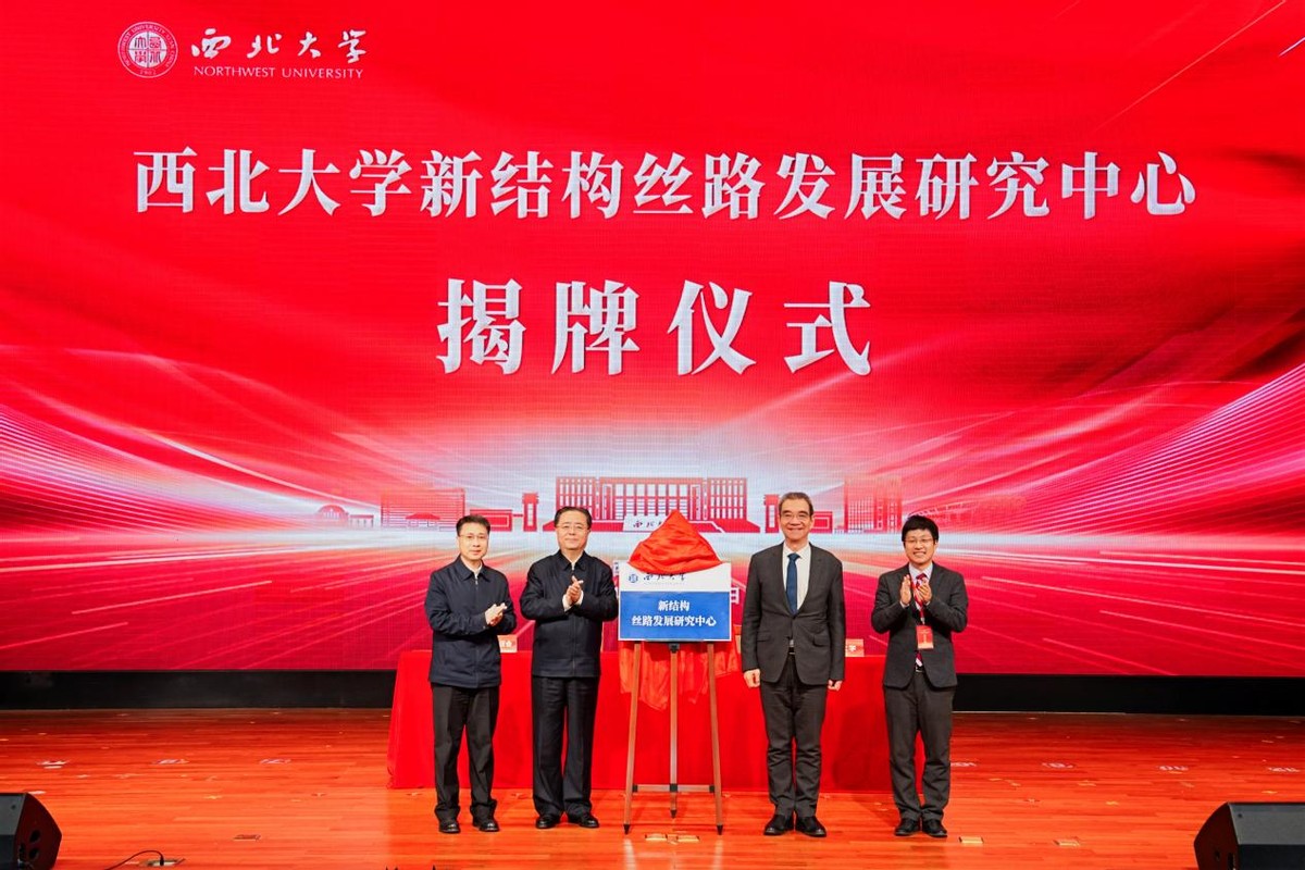 开幕式上,北京大学新结构经济学研究院院长林毅夫教授、中共陕西省委教育工委副书记王海波、星空app官网校长孙庆伟、北京大学新结构经济学研究院副院长王勇共同为星空app官网新结构丝路发展研究中心揭牌。