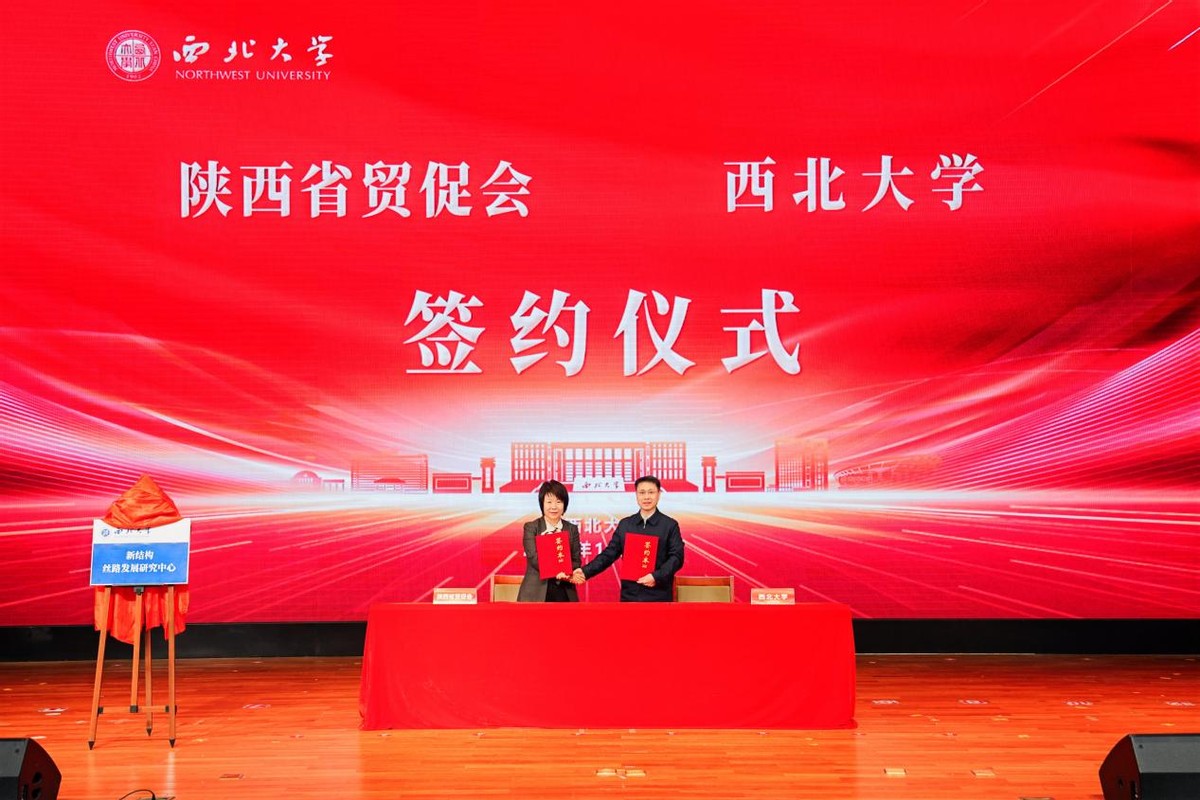陕西省贸促会会长贾正兰女士和星空app官网校长孙庆伟教授共同签署《陕西省贸促会—星空app官网合作协议》。