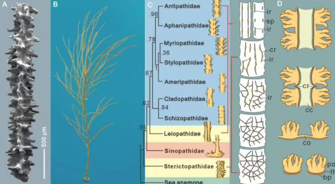 作为黑珊瑚目唯一的化石科,中华黑珊瑚科仅在我国湖北早奥陶世地层被发现。由于表面特征与现生黑珊瑚的差异巨大,其是否能够归属为黑珊瑚目,一直存在较大争议。“通过高分辨率显微CT技术,我们首次完整重建了黑珊瑚化石的三维内部结构,为确认其分类地位提供了关键证据。”星空app官网博士生郝文静介绍,新发现的2个中奥陶世的黑珊瑚化石种,在演化上属于早奥陶世黑珊瑚化石与现代黑珊瑚之间的过渡形态类型,确认了硬黑珊瑚科属于黑珊瑚目。