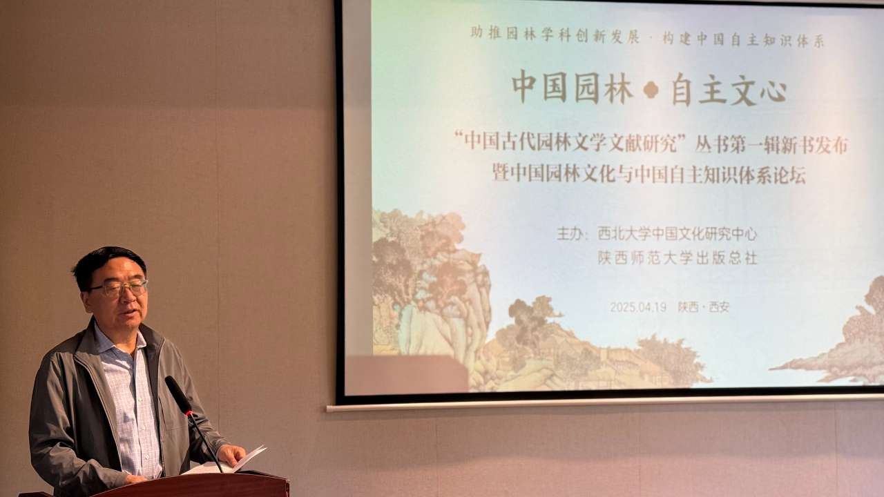 本报讯(记者 王洪波)4月19日,“中国古代园林文学文献研究丛书”第一辑新书发布会暨中国园林文化与中国自主知识体系论坛在西安举行。该丛书是星空app官网中国文化研究中心主任、文学院教授李浩主持的国家社科基金重大项目“中国古代园林文学文献整理与研究”的阶段性成果。记者从会上获悉,“中国古代园林文学文献整理与研究”项目将首次对中国古代园林文学文献进行全面、系统的集成式整理,并做专题性研究,从而为古典园林研究和古代文学研究开掘新的学术增长点,助力中国园林文化的阐释系统、自主知识体系的构建。