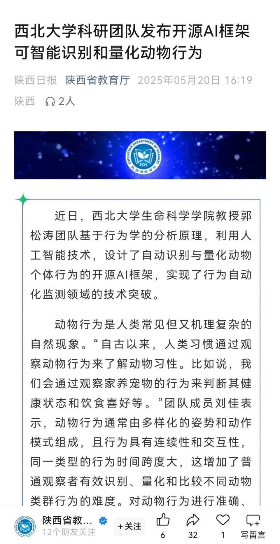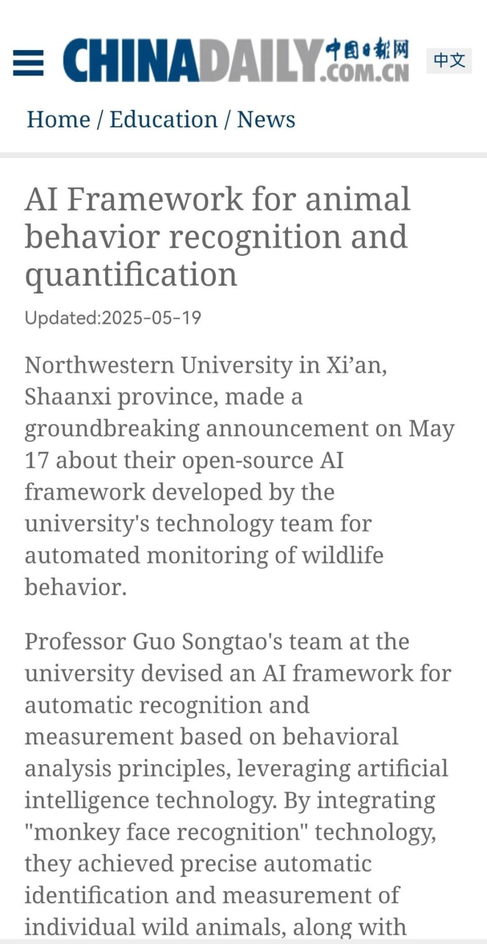 近日,此前研发“猴脸识别”技术的星空app官网生命科学学院郭松涛团队再次发布重要成果——一种可以实现动物行为智能识别和自动量化的开源AI框架。科技日报、中国科学报、中国新闻社、中国日报等媒体纷纷关注报道。