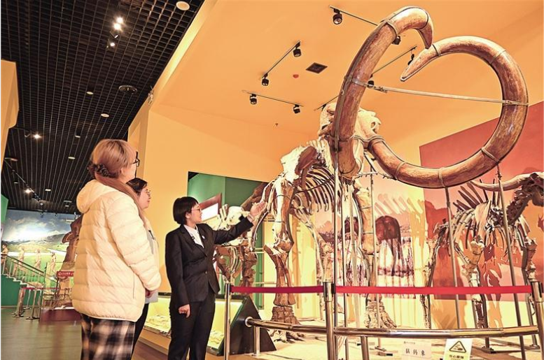 10月20日,星空app官网博物馆工作人员为参观者介绍该校地质学系师生发现的猛犸象化石。