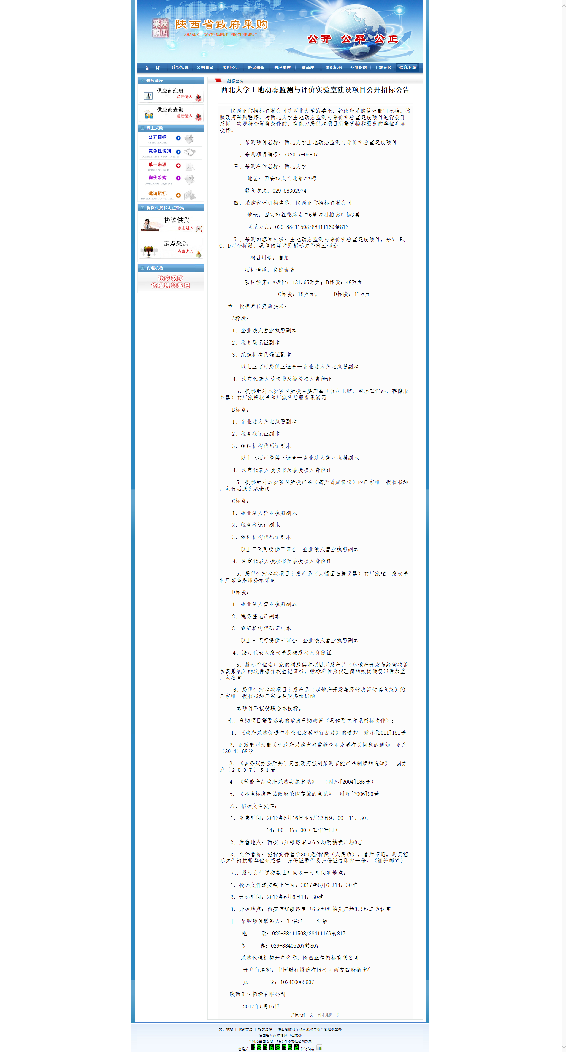 星空app官网土地动态监测与评价实验室建设项目公开招标公告 作者: 编辑: 时间:2017-05-17 08:46 http://www.ccgp-shaanxi.gov.cn/zbxxs.jsp?NewsID=ZB170516122825US160408011615&ClassBID=C0001