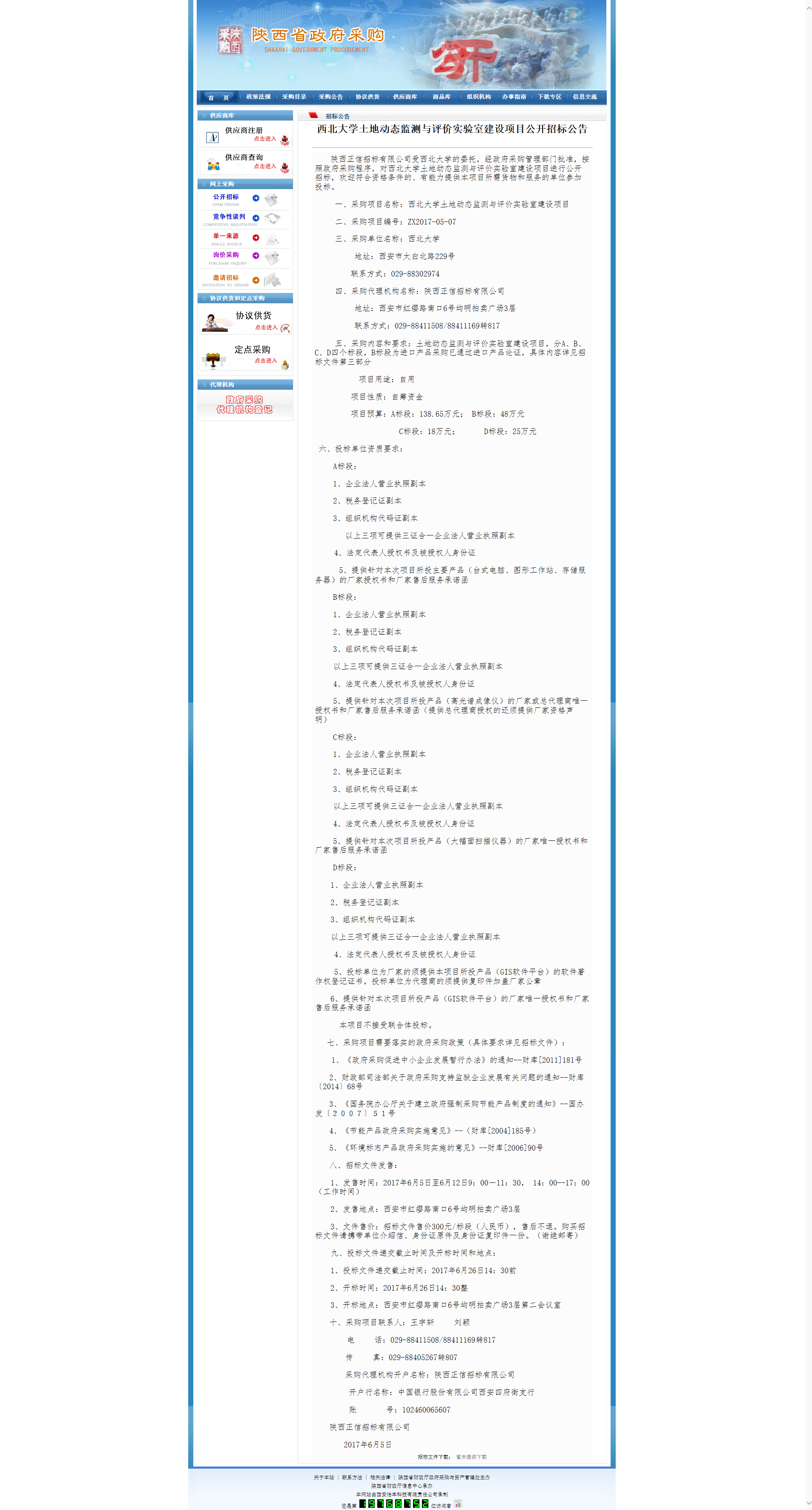星空app官网土地动态监测与评价实验室建设项目公开招标公告 作者: 编辑: 时间:2017-06-05 16:52 http://www.ccgp-shaanxi.gov.cn/zbxxs.jsp?NewsID=ZB170605150805US160408011615&ClassBID=C0001