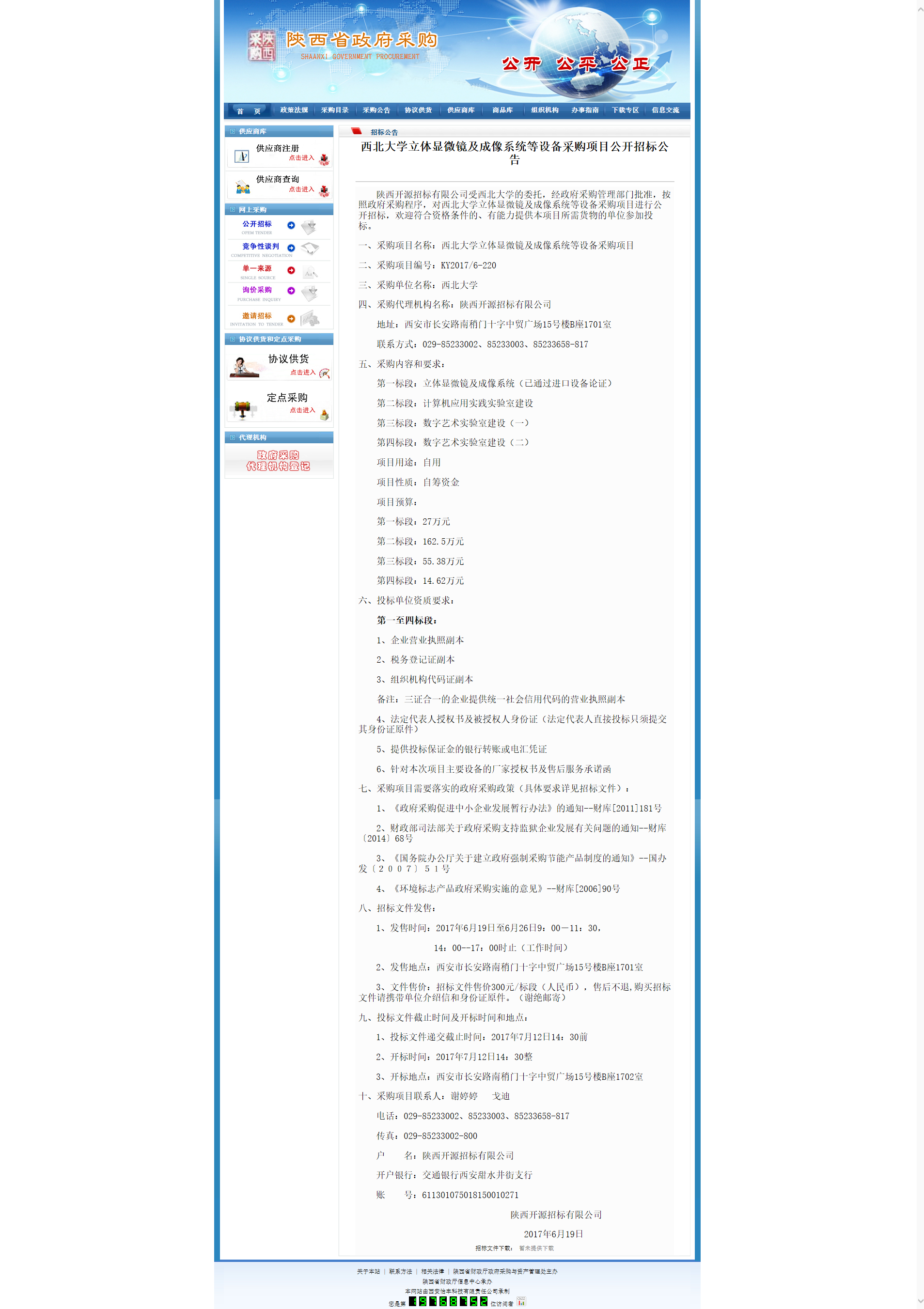 星空app官网立体显微镜及成像系统等设备采购项目公开招标公告 作者: 编辑: 时间:2017-06-20 08:24 http://www.ccgp-shaanxi.gov.cn/zbxxs.jsp?NewsID=ZB170619161034US131018031658&ClassBID=C0001