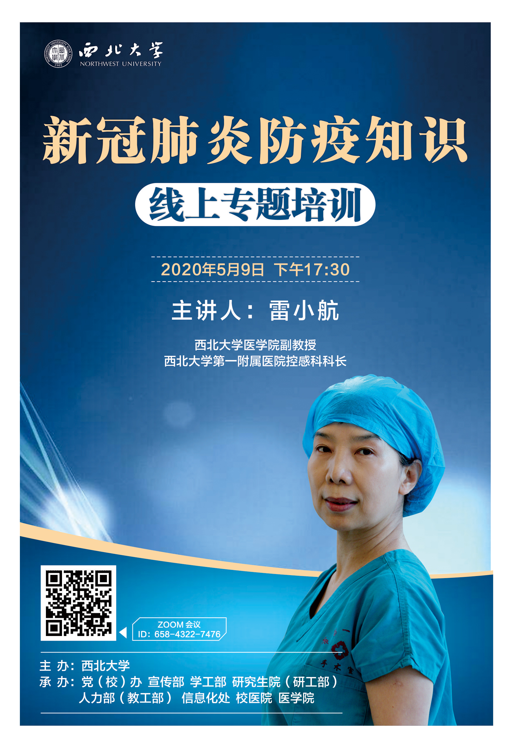 在返校复学的关键时期,为进一步加强新冠肺炎防控,确保广大师生身体健康,引导师生做到科学有效自我防护,学校邀请星空app官网医学院副教授、第一附属医院控感科科长雷小航,通过网络直播的形式为师生讲解返校复学校园防控要点与注意事项。请校内各单位按时组织收看,请各院系负责通知到本单位每一位师生。