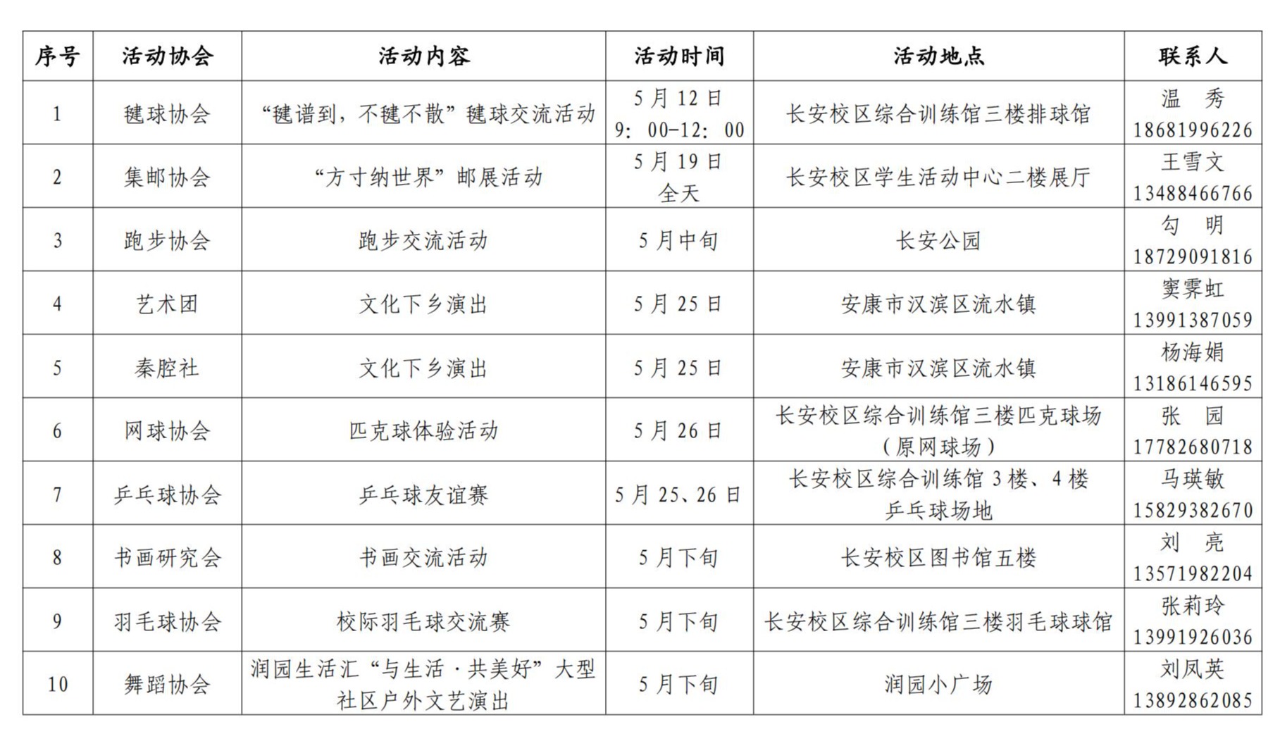 关于举办2024年教职工协会活动月的通知 作者:校工会 编辑: 时间:2024-05-09 各基层分会: 为了发挥教职工协会在推进校园文化建设、丰富教职工业余生活、促进教职工身心健康、凝聚和团结教职工等方面的作用,校工会决定于2024年5月份举办“星空app官网教职工协会活动月”,各教职工协会将开展丰富多彩的文体活动。欢迎广大教职工参加或前往观看。 具体活动安排如下: 联系人:田霖 联系电话:88302521 校工会 2024年5月9日