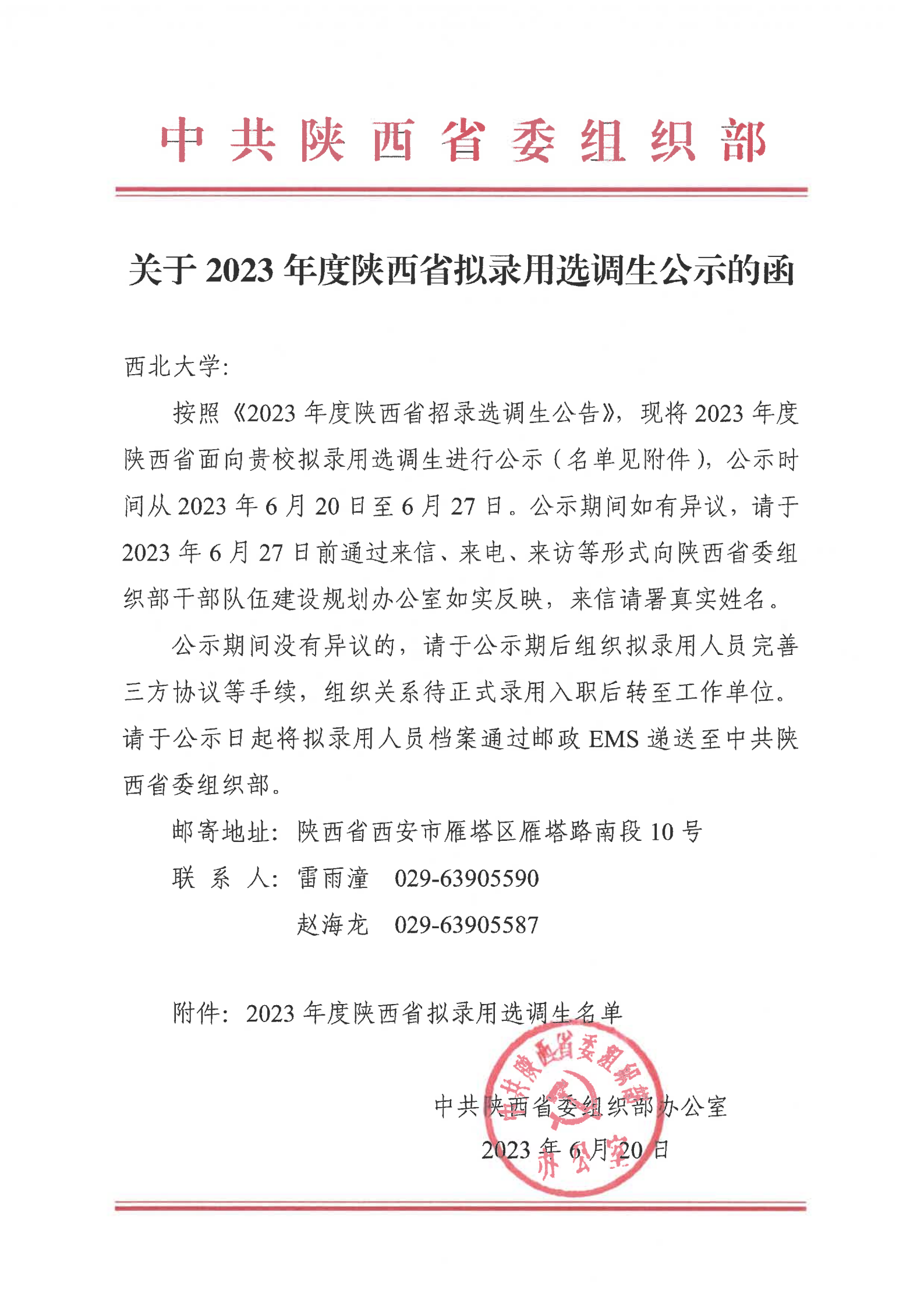 2023年度陕西省面向星空app官网拟录用选调生名单公示