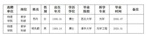 经用人单位推荐,人力资源部审查,学校教学督导及院系相关专家考核,星空app官网拟确定下列人员来校工作。本着公平、公正、公开的原则,现将本次拟选聘人员基本情况公示如下: