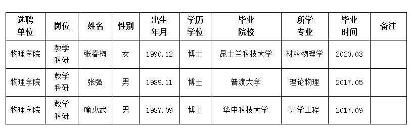 经用人单位推荐,人力资源部审查,学校教学督导及院系相关专家考核,星空app官网拟确定下列人员来校工作。本着公平、公正、公开的原则,现将本次拟选聘人员基本情况公示如下: