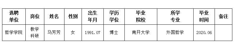 经用人单位推荐,人力资源部审查,学校教学督导及院系相关专家考核,星空app官网拟确定下列人员来校工作。本着公平、公正、公开的原则,现将本次拟选聘人员基本情况公示如下: