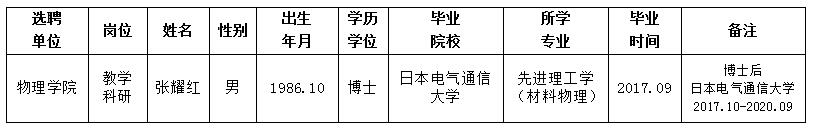 经用人单位推荐,人力资源部审查,学校教学督导及院系相关专家考核,星空app官网拟确定下列人员来校工作。本着公平、公正、公开的原则,现将本次拟选聘人员基本情况公示如下: