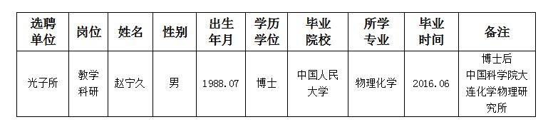 经用人单位推荐,人力资源部审查,学校教学督导及院系相关专家考核,星空app官网拟确定下列人员来校工作。本着公平、公正、公开的原则,现将本次拟选聘人员基本情况公示如下: