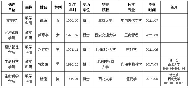 经用人单位推荐,人力资源部审查,学校教学督导及院系相关专家考核,星空app官网拟确定下列人员来校工作。本着公平、公正、公开的原则,现将本次拟选聘人员基本情况公示如下: