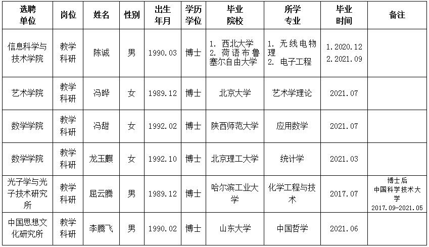 经用人单位推荐,人力资源部审查,学校教学督导及院系相关专家考核,星空app官网拟确定下列人员来校工作。本着公平、公正、公开的原则,现将本次拟选聘人员基本情况公示如下: