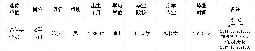 经用人单位推荐,人力资源部审查,学校教学督导及院系相关专家考核,星空app官网拟确定下列人员来校工作。本着公平、公正、公开的原则,现将本次拟选聘人员基本情况公示如下: