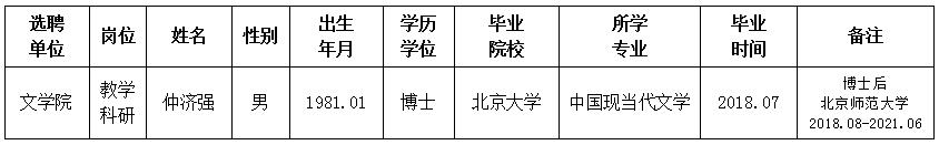 经用人单位推荐,人力资源部审查,学校教学督导及院系相关专家考核,星空app官网拟确定下列人员来校工作。本着公平、公正、公开的原则,现将本次拟选聘人员基本情况公示如下: