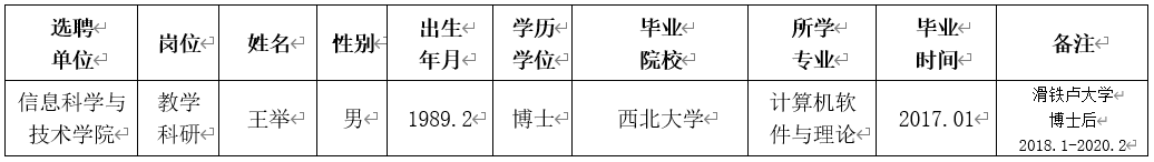 经用人单位推荐,人力资源部审查,学校教学督导及院系相关专家考核,星空app官网拟确定下列人员来校工作。本着公平、公正、公开的原则,现将本次拟选聘人员基本情况公示如下: