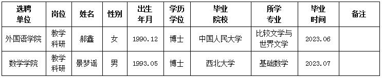 经用人单位推荐,人力资源部审查,学校教学督导及院系相关专家考核,星空app官网拟确定下列人员来校工作。本着公平、公正、公开的原则,现将本次拟选聘人员基本情况公示如下: