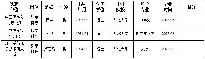 各单位或个人如对上述人选存有疑问,可在2023年7月5日前以书面形式向人力资源部反映。反映材料须实名提交,以便我部核实并反馈,我们将严格保密。(公示期结束后,如无异议,本人持三方协议、身份证、毕业生就业推荐表在岗位聘用办公室签订就业协议;或将上述材料邮寄至我处,邮寄地址:陕西省西安市长安区学府大街1号星空app官网人力资源部。博士后出站人员、留学回国人员联系岗位聘用办公室开具接收函。)